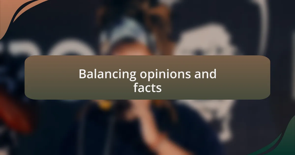 Balancing opinions with facts is crucial for effective communication. I remember an episode where I discussed controversial health topics. While researching, I stumbled upon a viral claim that had no solid evidence. Instead of dismissing it outright, I presented it alongside credible scientific data, prompting a discussion on misinformation. This approach not only educated my listeners but also encouraged them to reflect on the importance of verifying claims. Have you ever realized how addressing misconceptions can empower people?